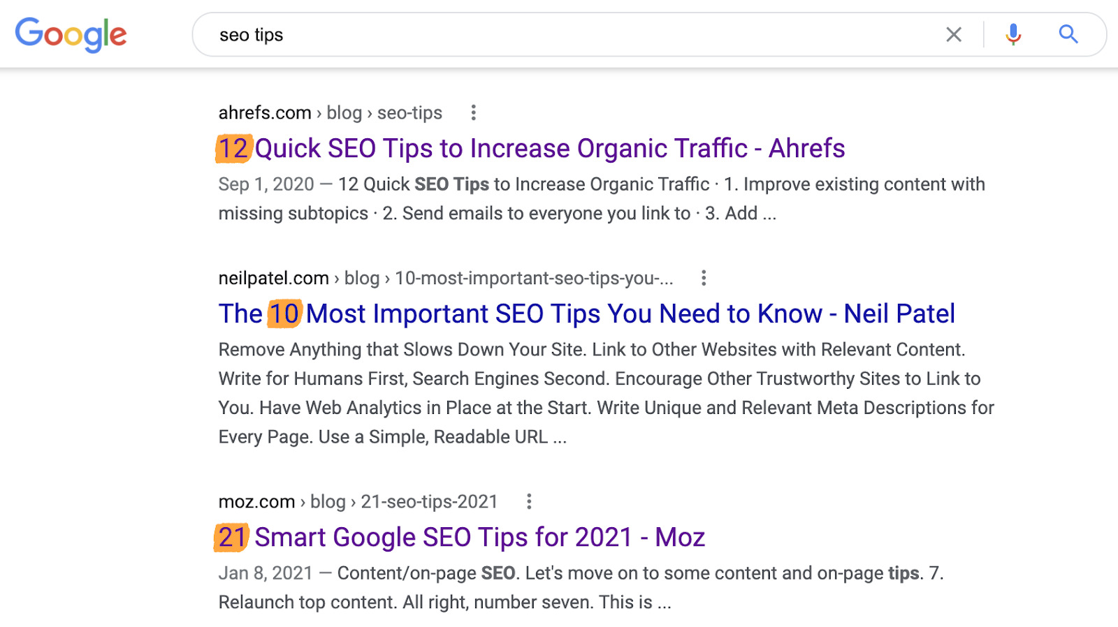 No entanto, a maioria dos resultados para “SEO dicas” são postagens de listas:
