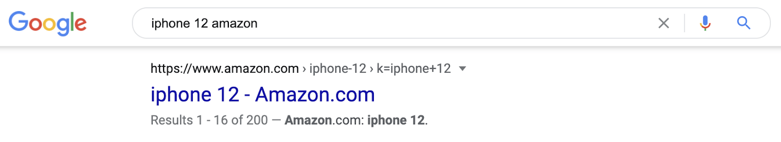 Mas as pesquisas navegacionais não são sempre apenas o nome das marcas. Se alguém pesquisar por “iphone 12 amazon”, isso pode também ser considerado uma pesquisa navegacional. Embora o pesquisador esteja à procura de um produto específico, eles já decidiram onde o vão comprar—na Amazon.