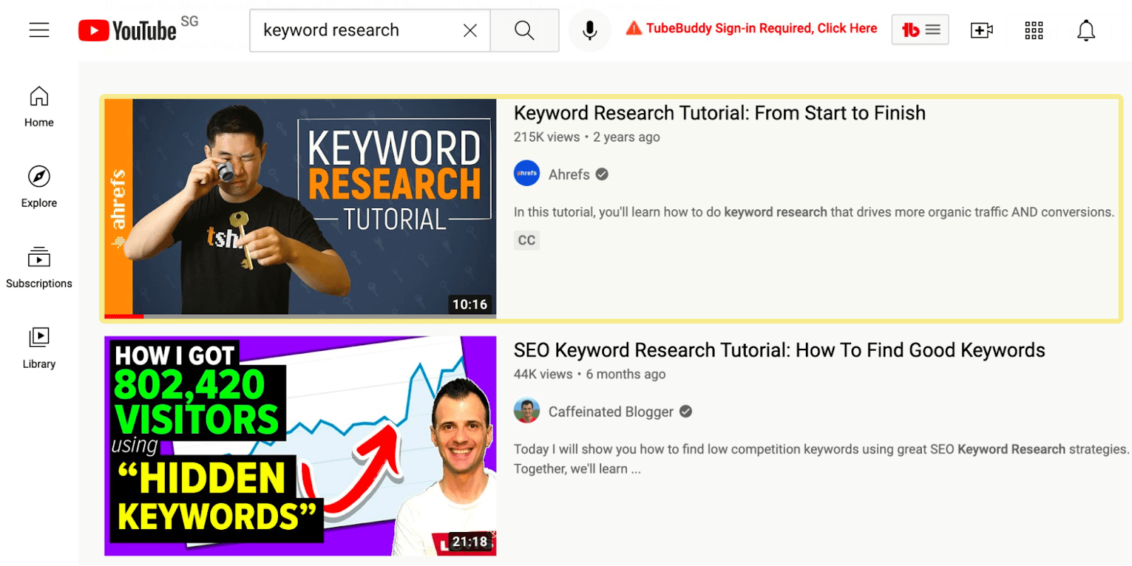 O nosso vídeo também aborda o Explorador de Palavras-chave como a ferramenta preferencial para fazer pesquisa de palavras-chave, promovendo o nosso negócio para milhares de espetadores do YouTube todos os meses.