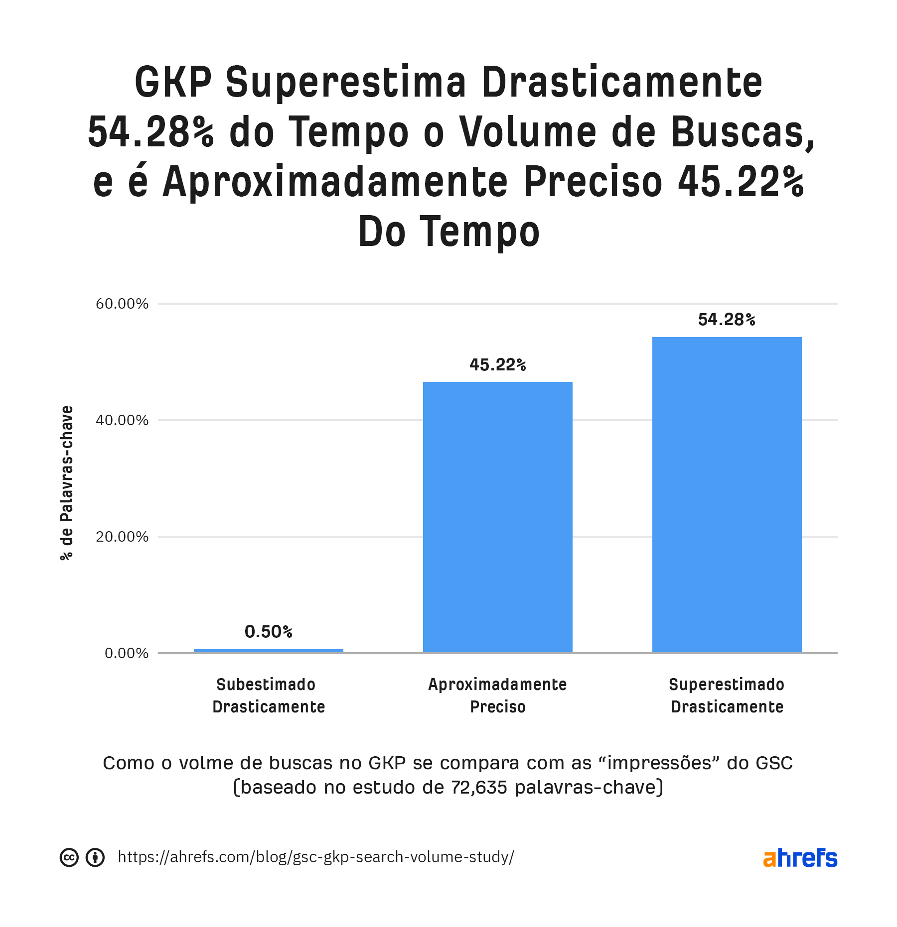 Descobriu-se que os volumes de pesquisa no GKP eram “aproximadamente precisos” em apenas 45% dos casos. Nos restantes casos, os volumes de pesquisa do GKP foram diferentes das impressões do GSC por uma margem bastante grande.