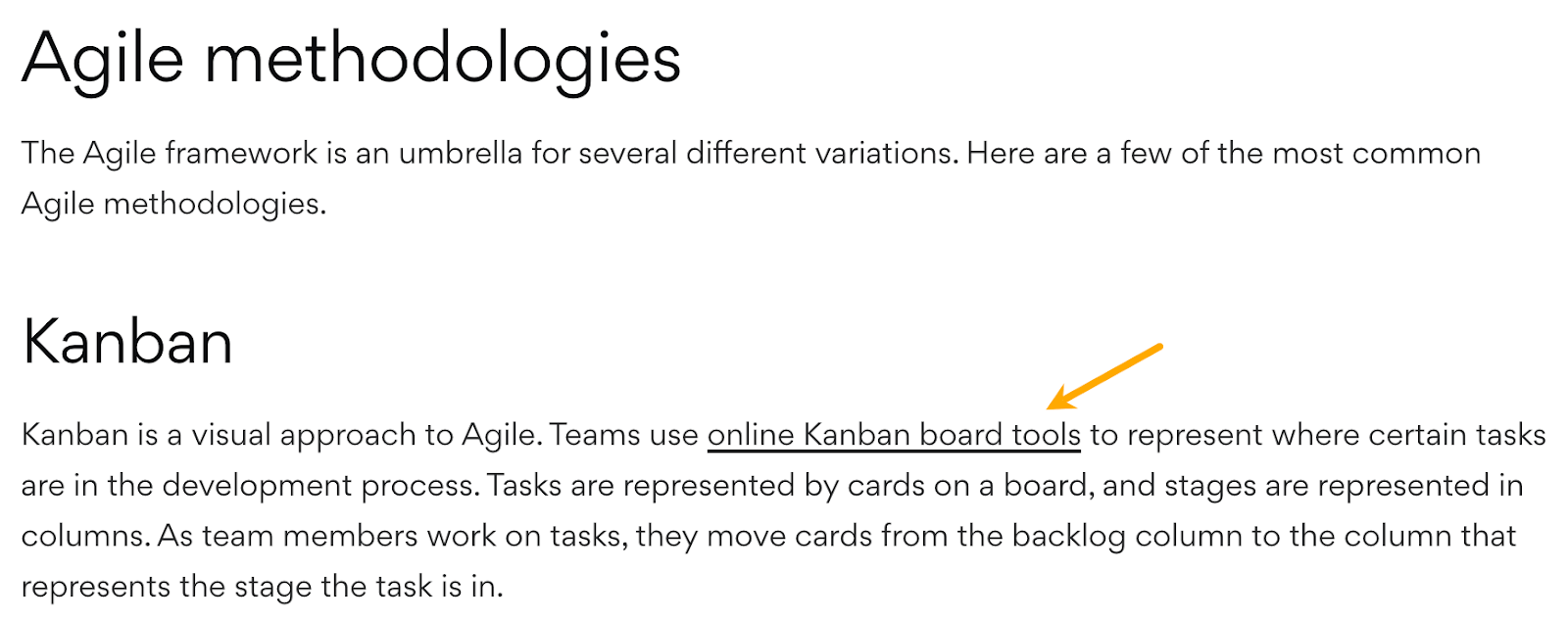 In fact, many successful SaaS companies demonstrate this approach to content. Here’s another example from Asana. Their guide to agile methodology has many references to the functionality of the product yet none of them feels forced because they are relevant to the topic.