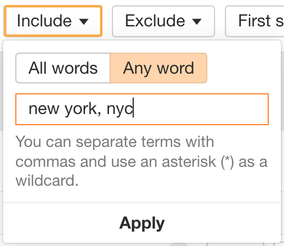 If you check the Matching terms report, you’ll generally get a big list that you’ll need to filter to make it more manageable when turning it into a content plan.