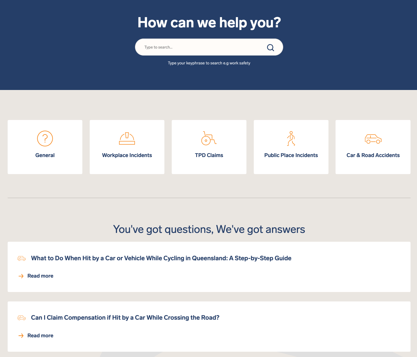 Here’s an example of how Smith’s Lawyers has created a knowledge base with a search feature and broad categories to allow people to find answers to all their questions more easily.