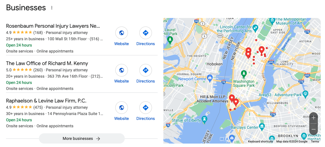 The most common way that people search for legal services is by searching for things like “personal injury lawyer near me” or “car accident lawyer new york”.
