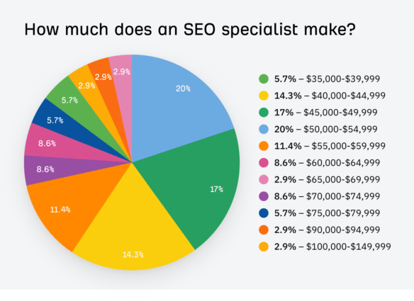 The one outlier number (>$100,000) was a senior in-house SEO specialist role at a tech company. They required a minimum of five years of SEO experience.