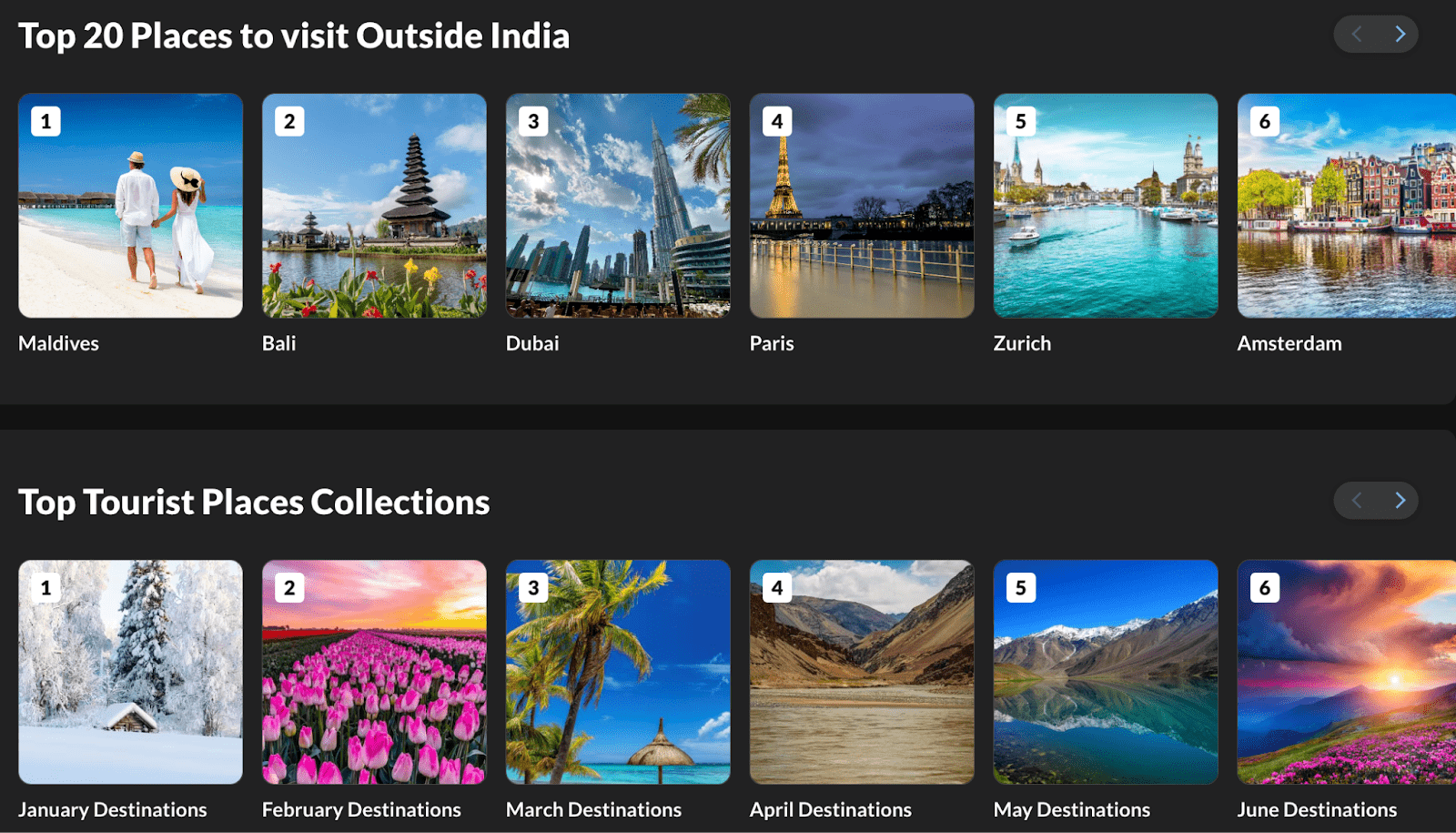 Makemytrip put together a collection of search-optimized landing pages, each offering different travel ideas based on how people search for their trips.