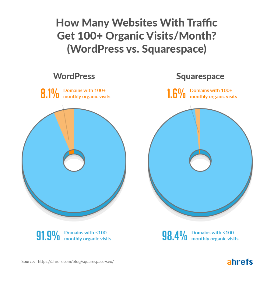 While Squarespace sites get less search traffic as compared to WordPress, in general, they seem to do better than Wix sites.
