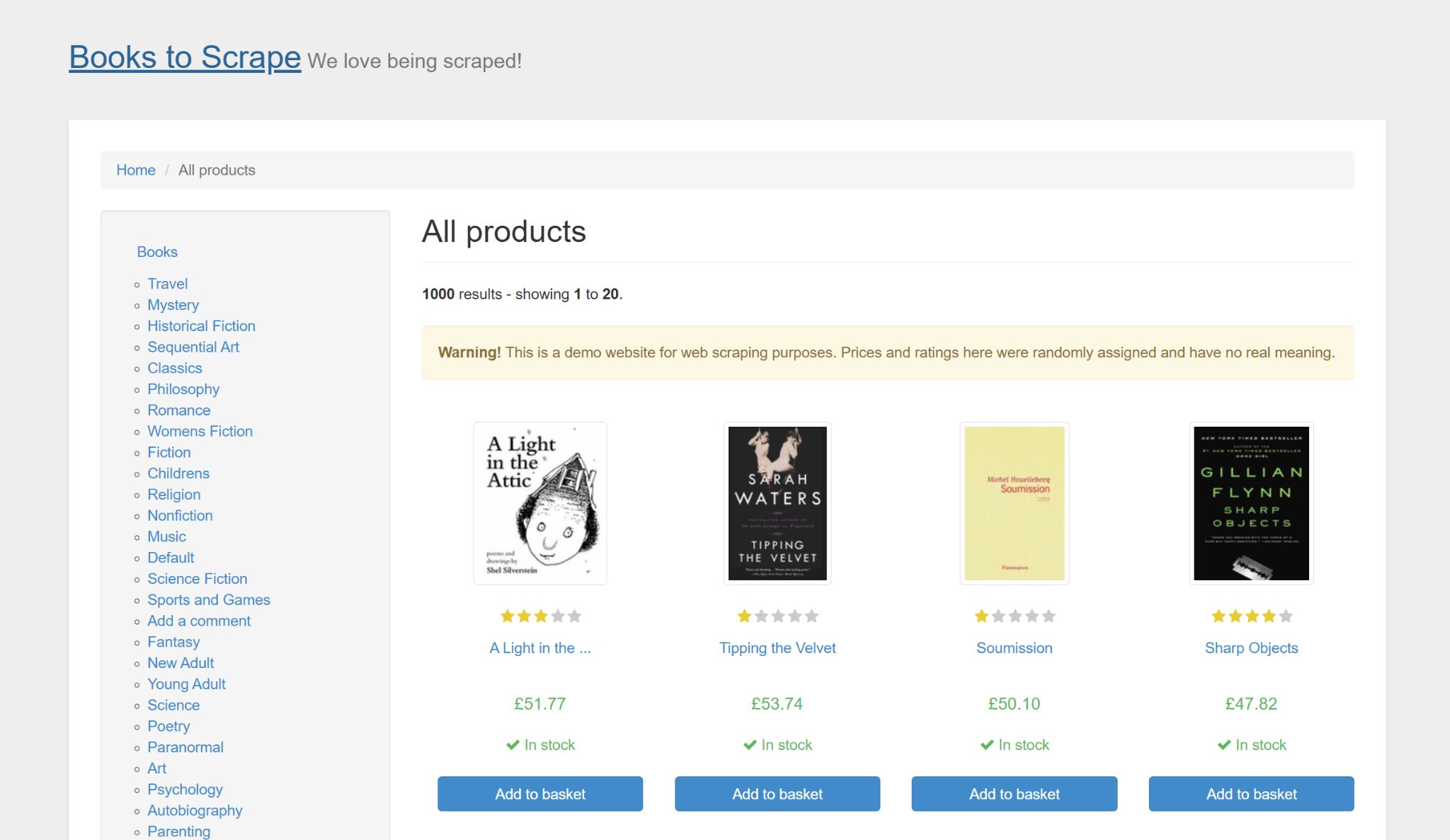 - Practice scraping your own site to avoid breaking anything. You can also test your skills on sites that explicitly allow scraping—like Books to Scrape, a demo e-commerce site built for this purpose.
