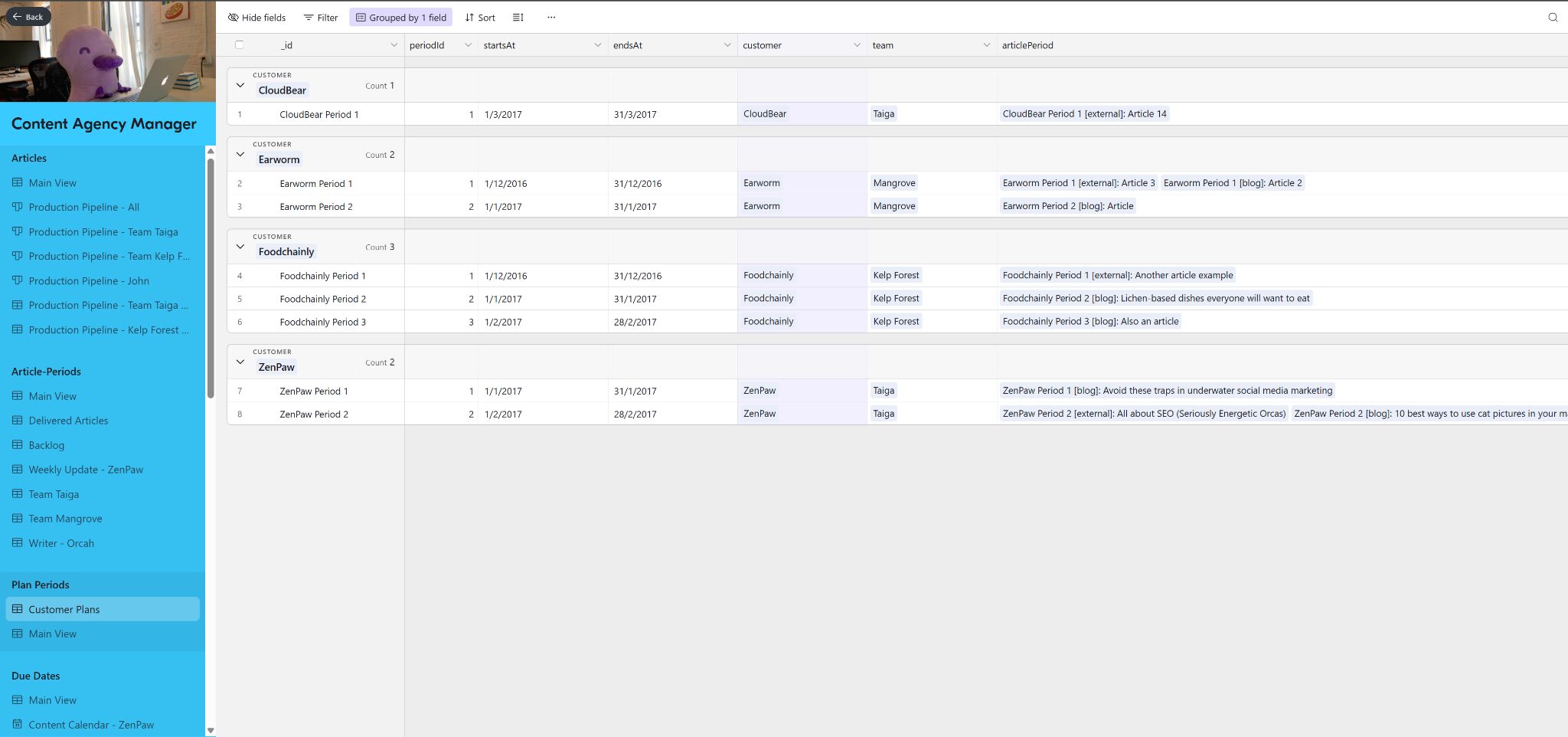 Here’s an example content management system we built for our marketing agency, way back in 2017.