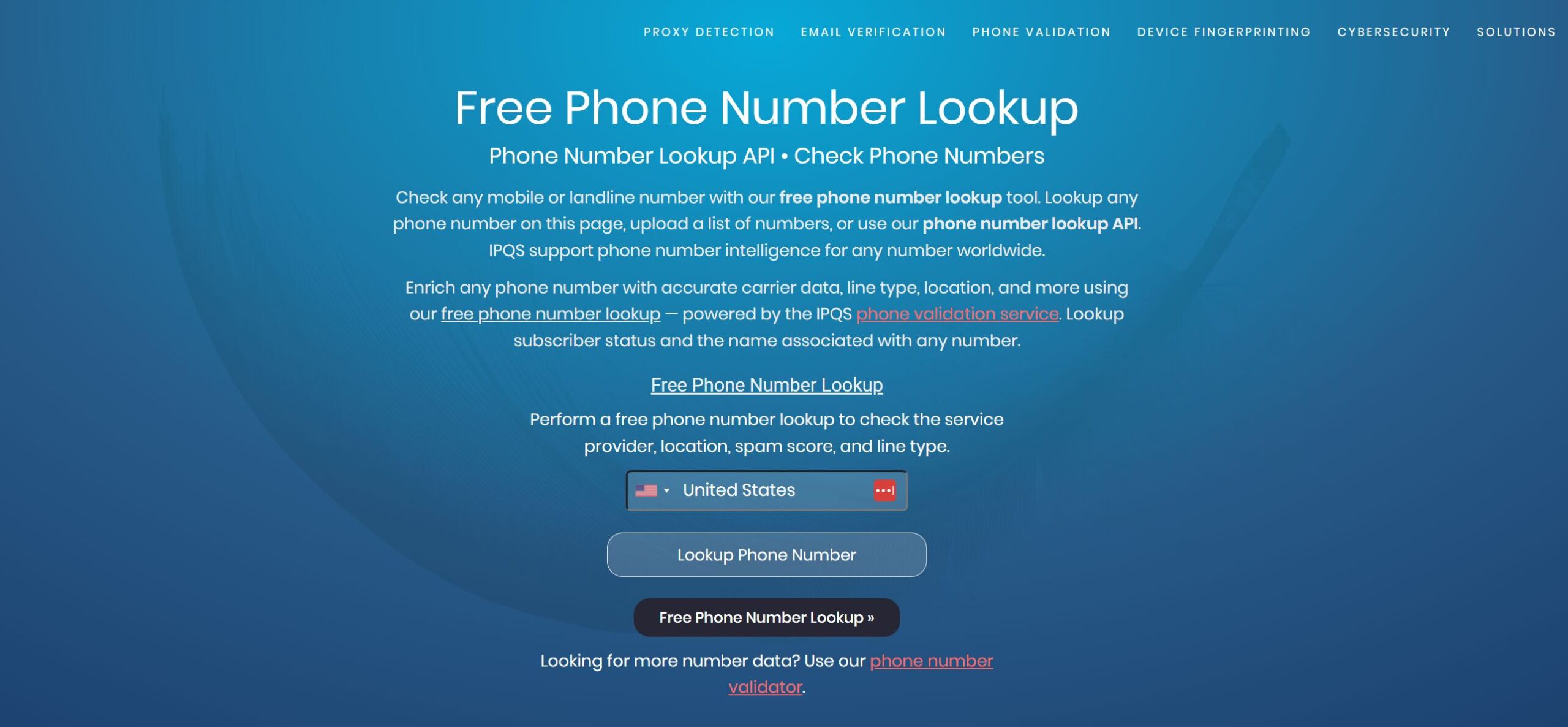 This page manages to rank in first place for keywords like phone number lookup (353K monthly searches in the US), phone lookup (48K), and check this phone (35K):