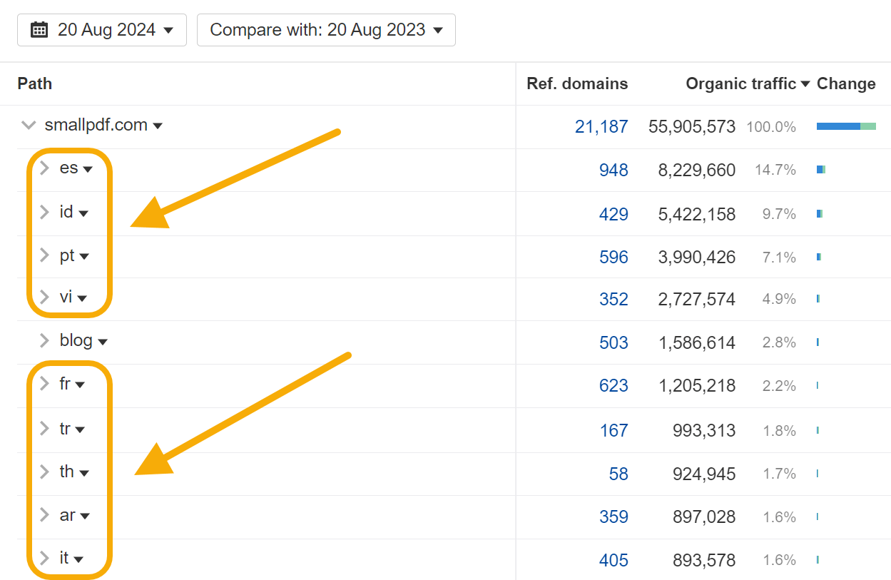 These tools have also been localized to different languages, with the Spanish-, Indonesian- and Portuguese-targeted subfolders generating a large portion of the website’s traffic growth: