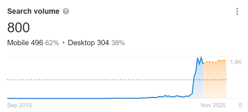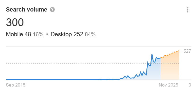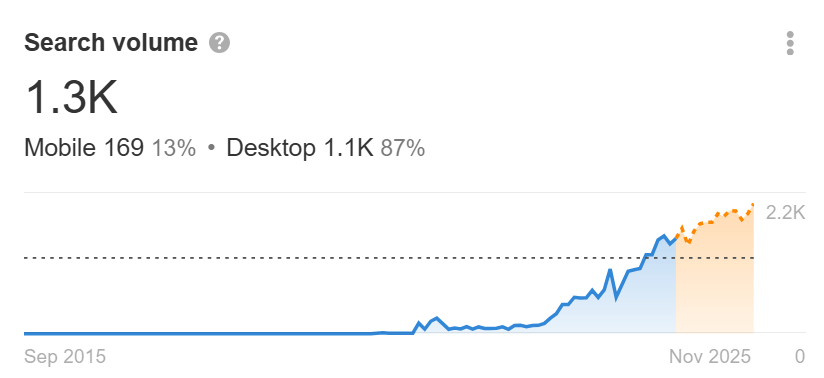 - Used the Trending filter to identify high-growth keywords (this sorts keywords by their 12-month growth trend¹ and sets a minimum monthly search volume²)