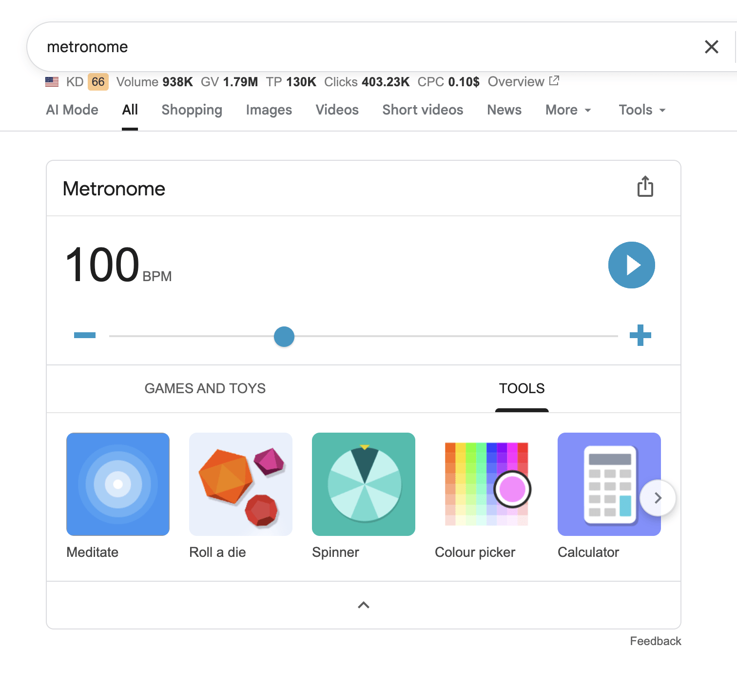 Google the keyword “metronome” and instead of a blog post or video, you’ll find an interactive tool. Google is getting better at making tools to serve these types of intent.