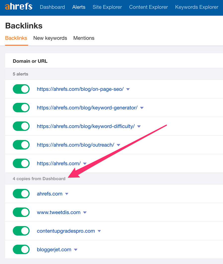 You may have noticed that adding a new campaign to your Ahrefs Dashboard automatically creates a set of different email alerts.