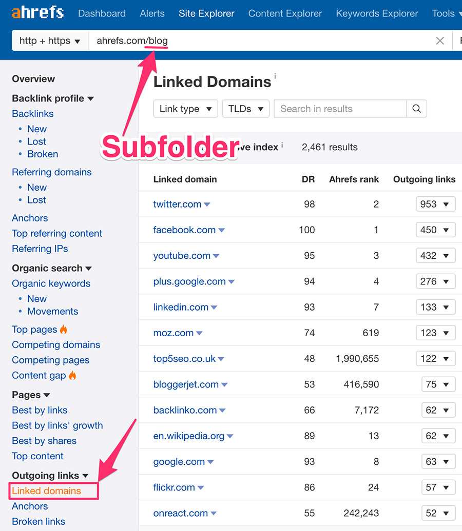 One of the things that we’ve fixed this time is the “Linked domains” report for subdomains and subfolders: