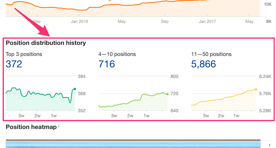 This adds an additional layer of insight to the total number of keywords that a target website ranks for in top100.