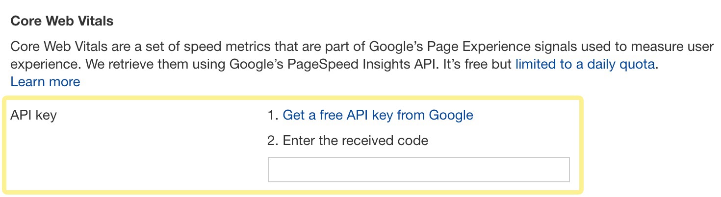 Remember that to see CWV data, you’ll need to head into your Site Audit Crawl settings and enable “Retrieve Core Web Vitals” with a valid API key set. Then you’ll need to run a fresh crawl.