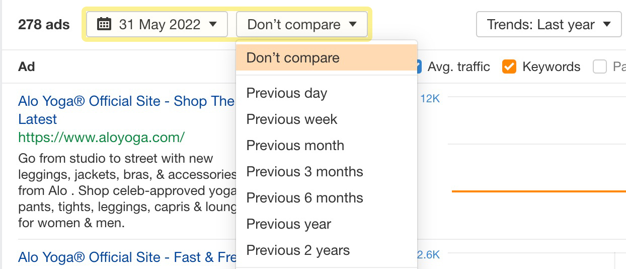 But now, you can search for keywords in the ad titles or Display URLs themselves, and filter by metrics like Total traffic, URL, and much more.