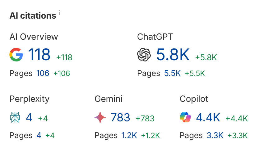 To find out, we used data from Ahrefs Site Explorer and Brand Radar to compare crucial metrics: page count, traffic, AI citations, page length, semantic similarity, and much more.