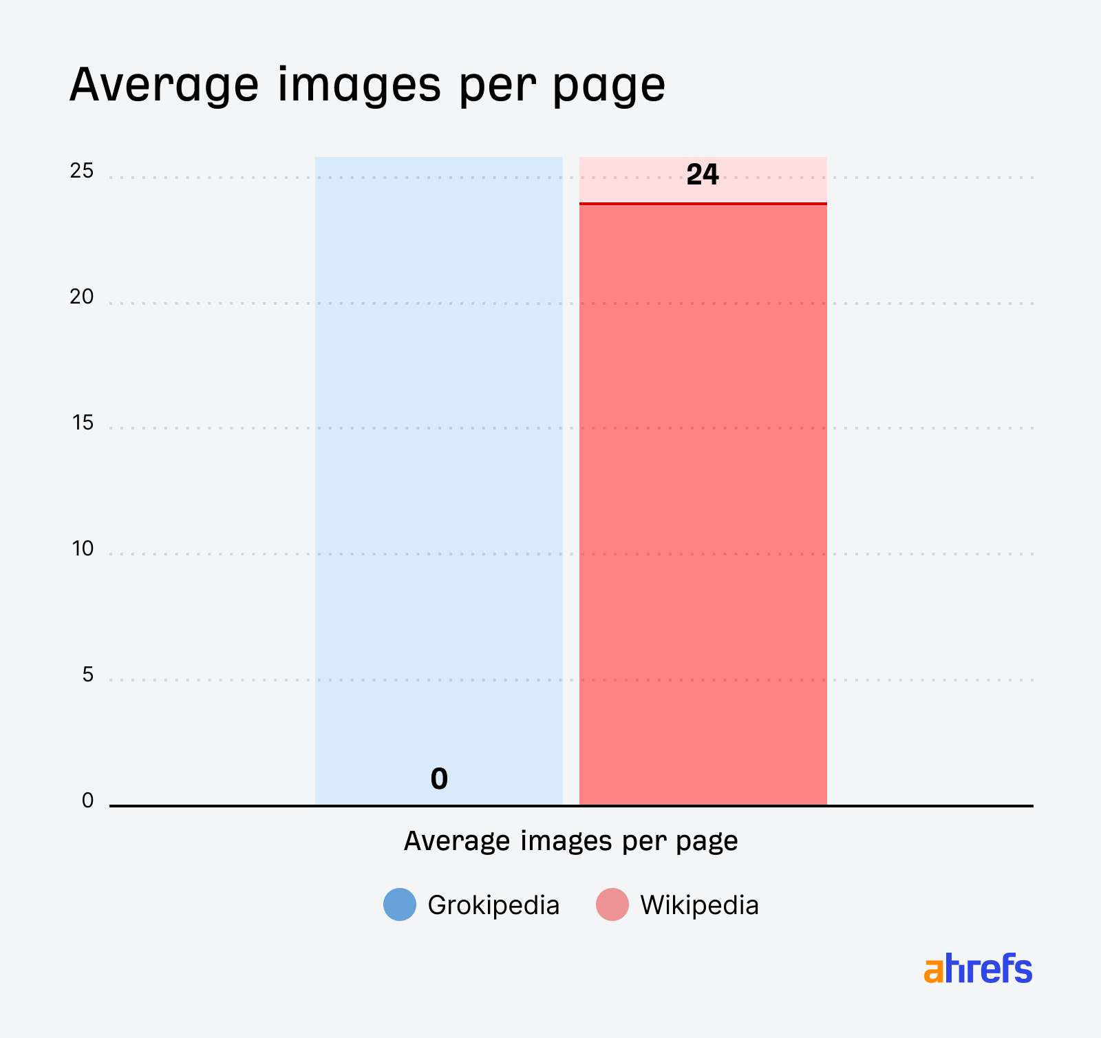 Images show the starkest difference. Wikipedia’s human-written, human-edited content contains an average of 24 images per page. Grokipedia has an average of… zero images per page: