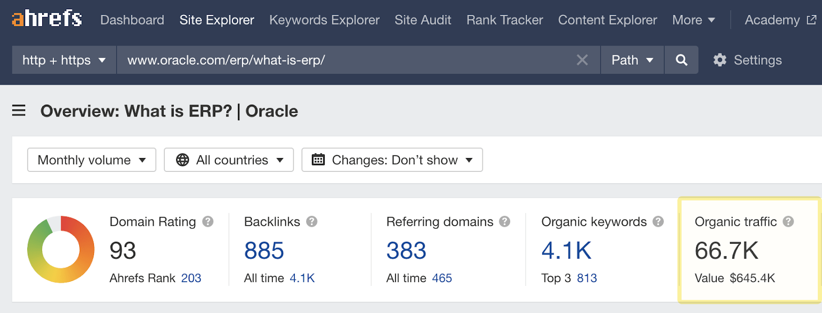 更进一步,ERP 供应商Oracle用一个简单的内容对这些关键词(在许多关键词中)进行了排名——结果,它们每月都有数以千计的有机访问: