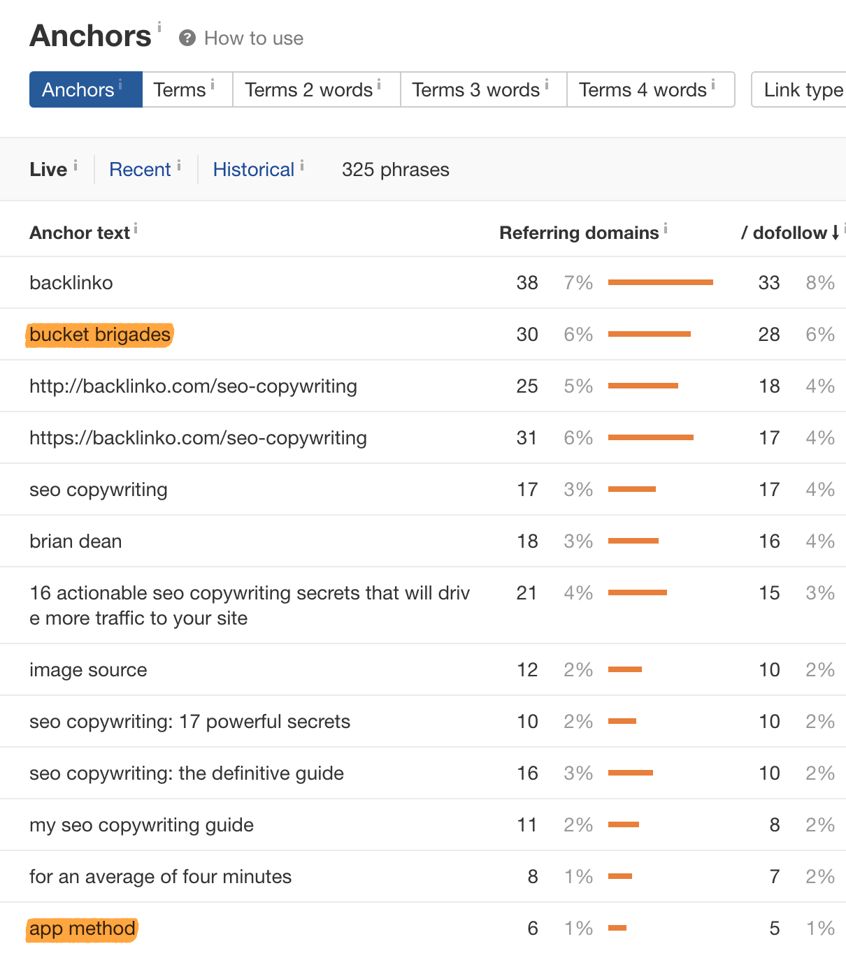 如果我们为一篇关于 “SEO copywriting” 的热门文章执行以上操作,我们会看到很多人因为两个独特的概念而链接: