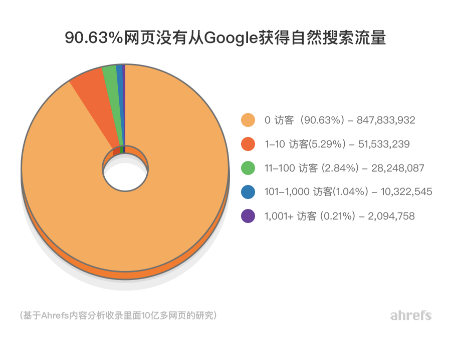 - 90.63% 的网页没有从谷歌获得自然的搜索流量。(Ahrefs).