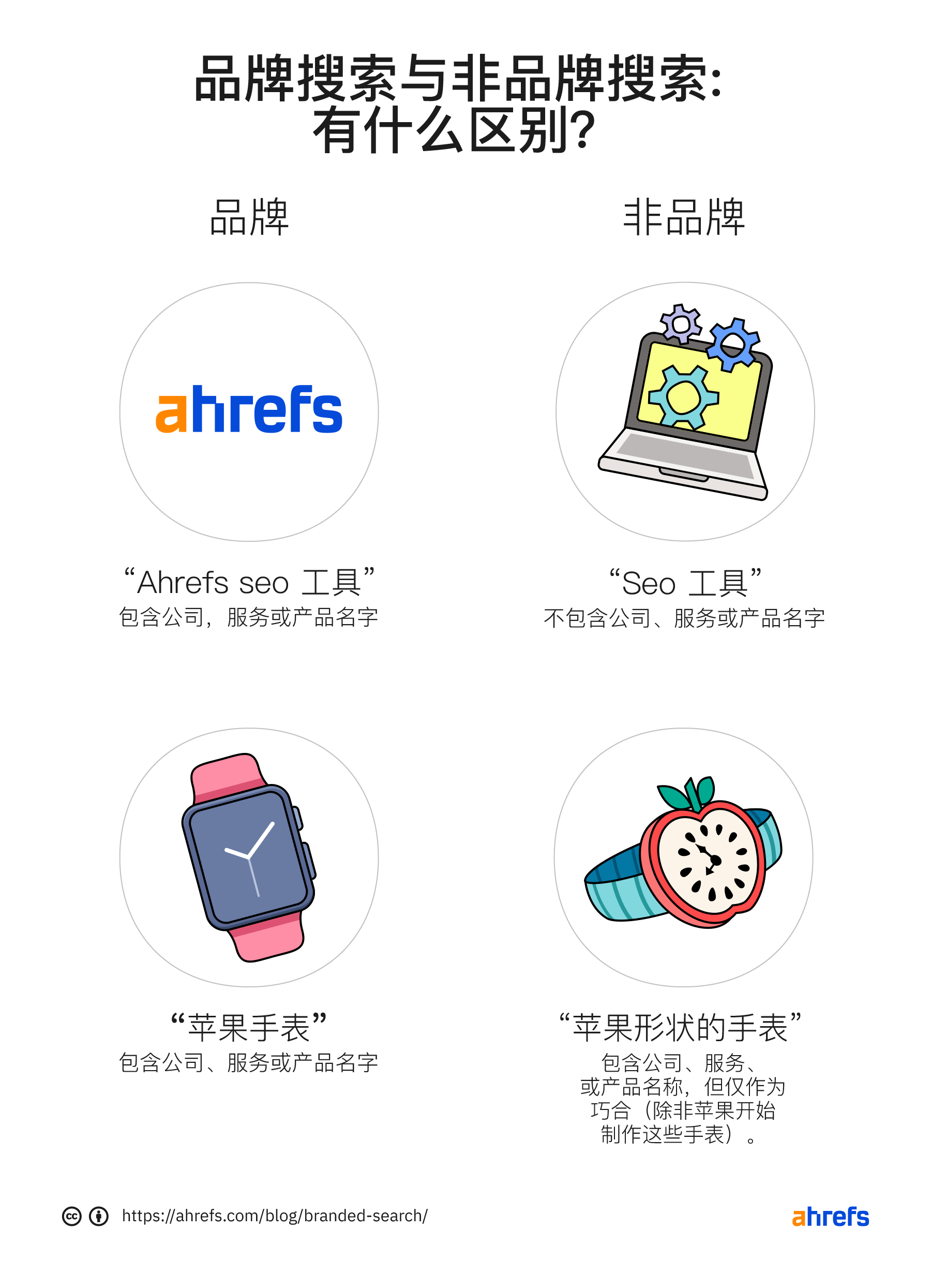 品牌搜索和非品牌搜索的区别在于,品牌搜索包含你的公司、服务或产品名称,而非品牌搜索则不包含。这同样适用于自然结果和搜索广告。