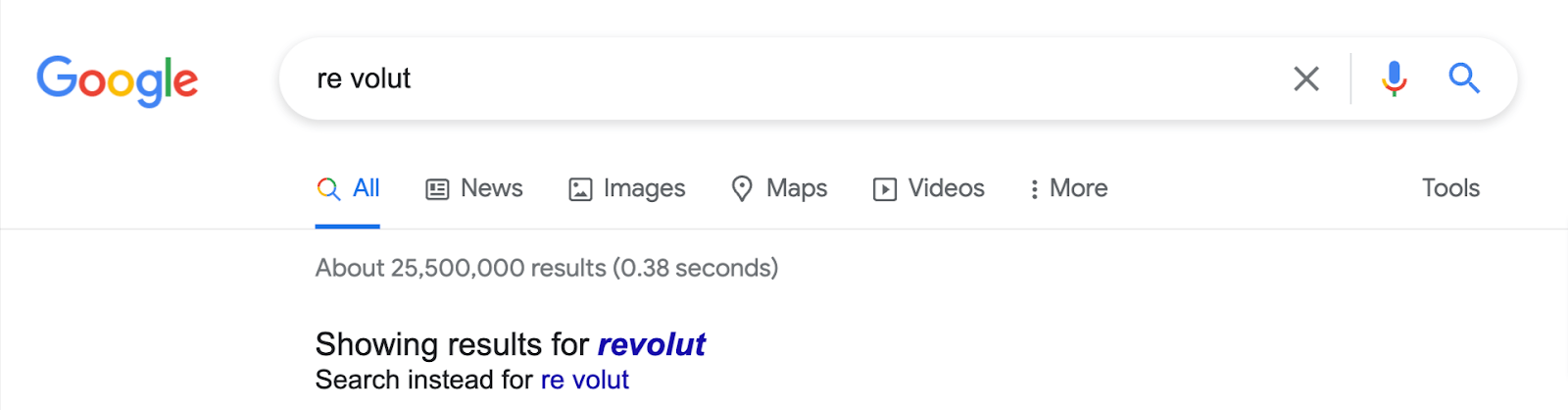 下面是一个搜索意图不匹配的页面示例。寻找 Revolut 标志的人可能想要一个可下载的官方高质量图像。但是在美国排名第一的网页上,Revolut 并没有提供这种服务。