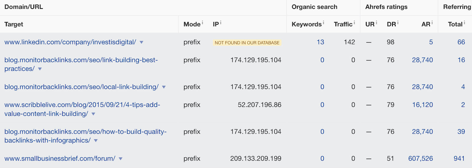 要查看这些页面的总反向链接,请导出 URL 列表并将它们粘贴到 Ahrefs 的批量分析工具中。