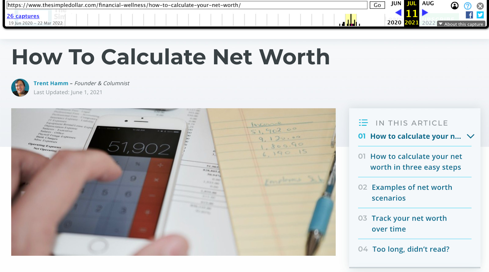 举例来说,此页面解释了如何用三个步骤计算净资产,给了一些示例计算,并提供如何随着时间推移提高你的净资产的技巧: