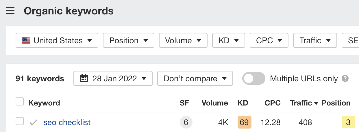 例如,如果我们为我们的 SEO 检查表文章执行此操作,你可以看到它排在第 3 位:
