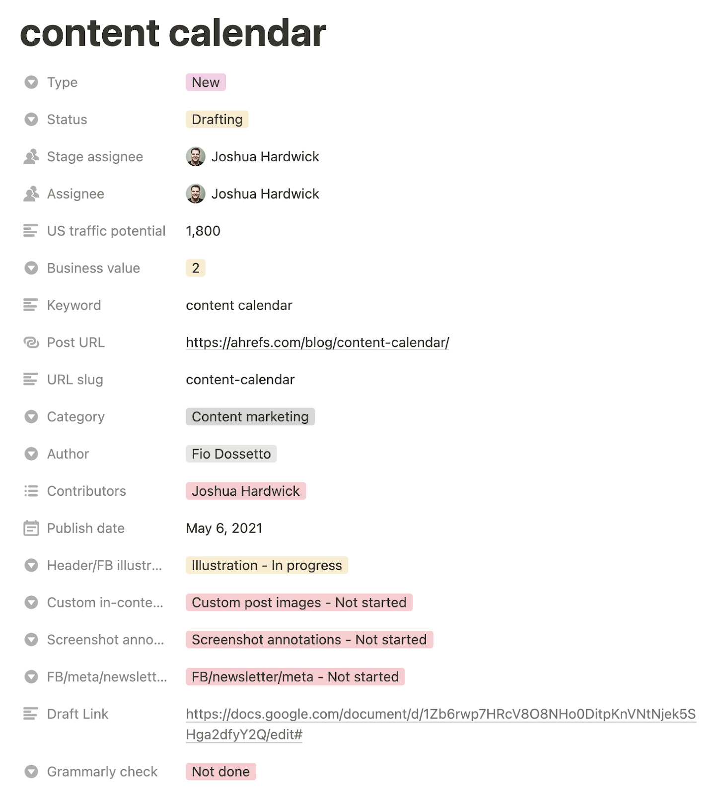 例如,对于我们发布的每篇博客文章,我们需要分配和跟踪以下内容: