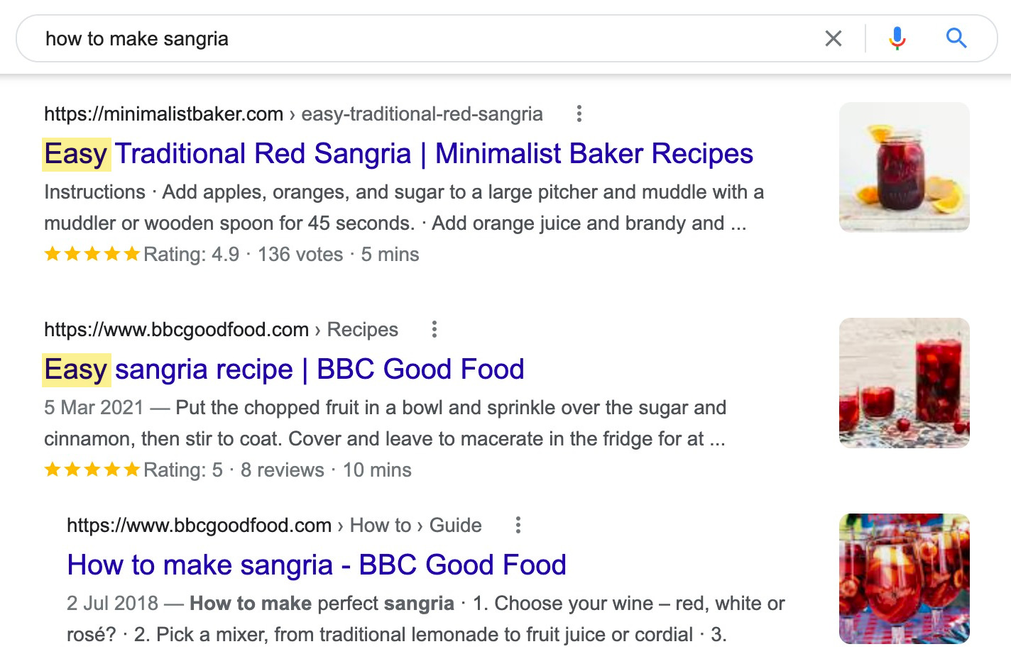 内容角度是指主要的“卖点”的内容。例如,搜索“如何制作桑格利亚汽酒”的人希望菜谱简单。