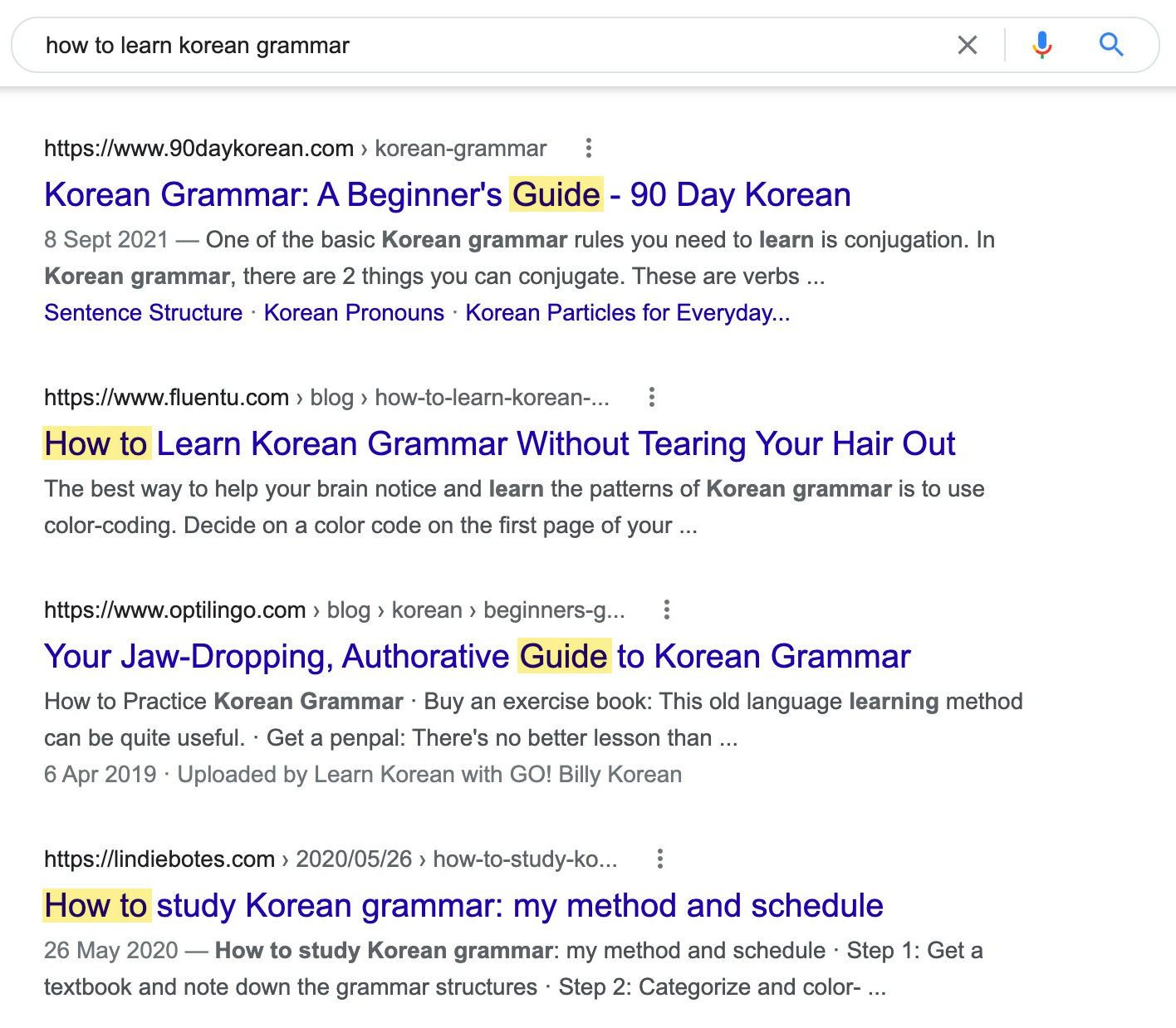 虽然“如何学习韩语语法”的最高结果,主要是How-TOS和指南:
