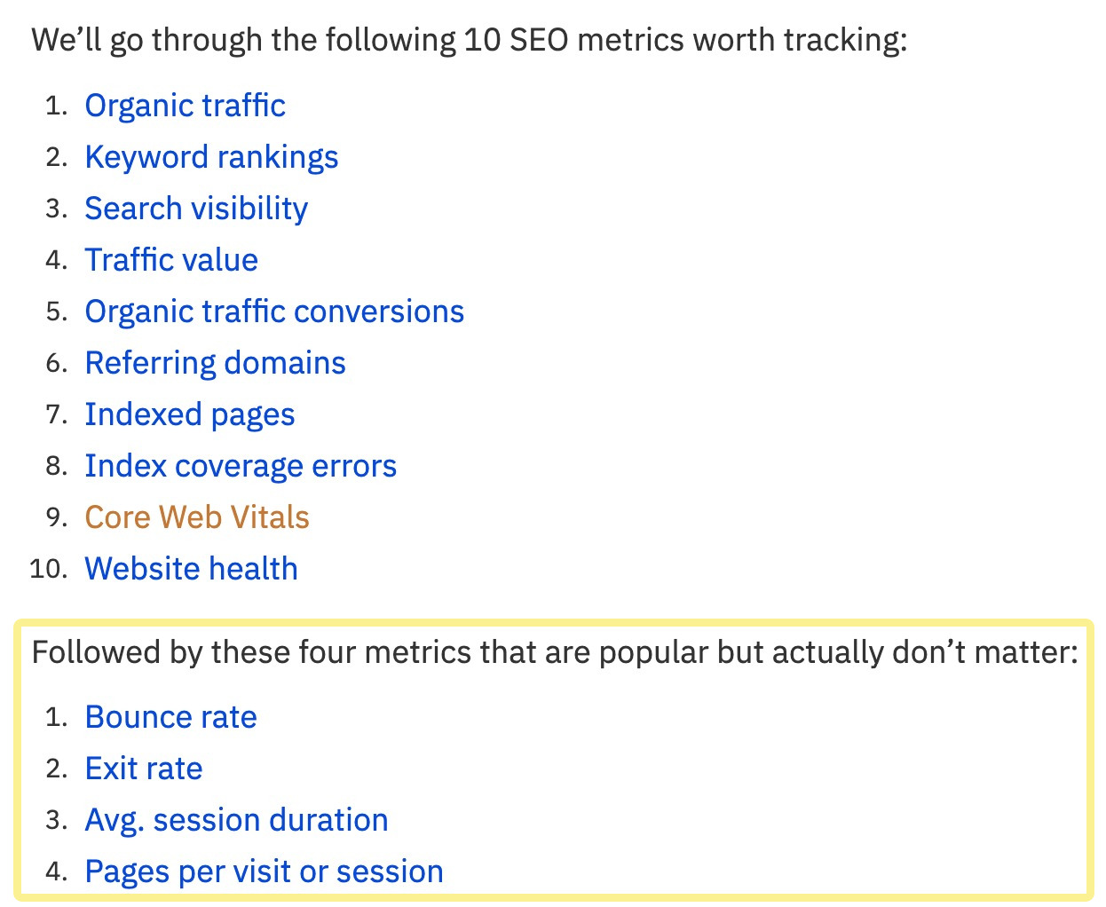 我们也经常在我们的博客上分享我们的观点。例如,我的同事 Michal Pecanek 自信地说,有一些流行的搜索引擎优化度量并不重要: