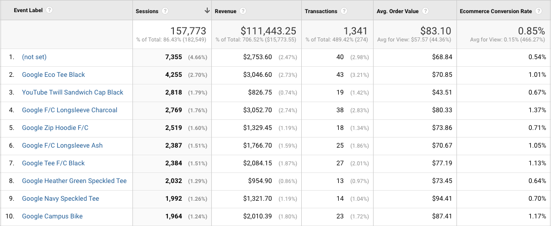 要获得更强大的报告,请使用 UA。UA 报告可以通过事件标签显示收入、交易和电子商务转换率数据。以下是如何做到这一点。