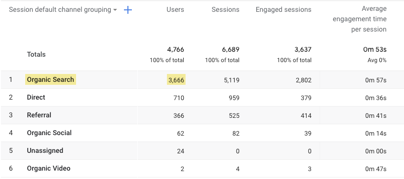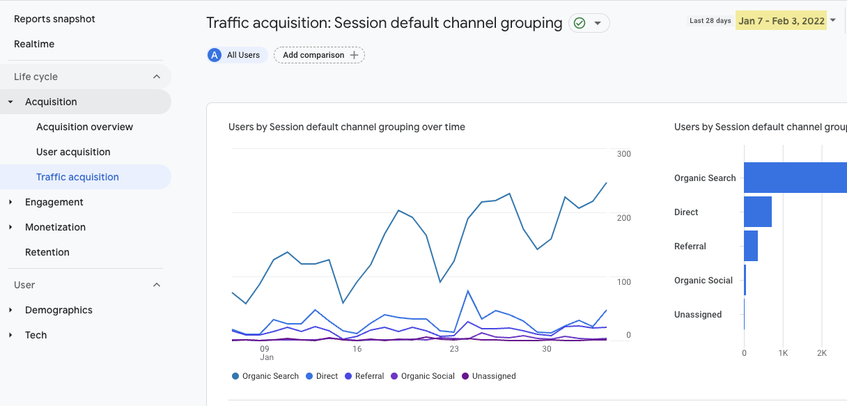 例如,下面的截图显示我们在2021年第四季度从自然搜索获得了3666个用户: