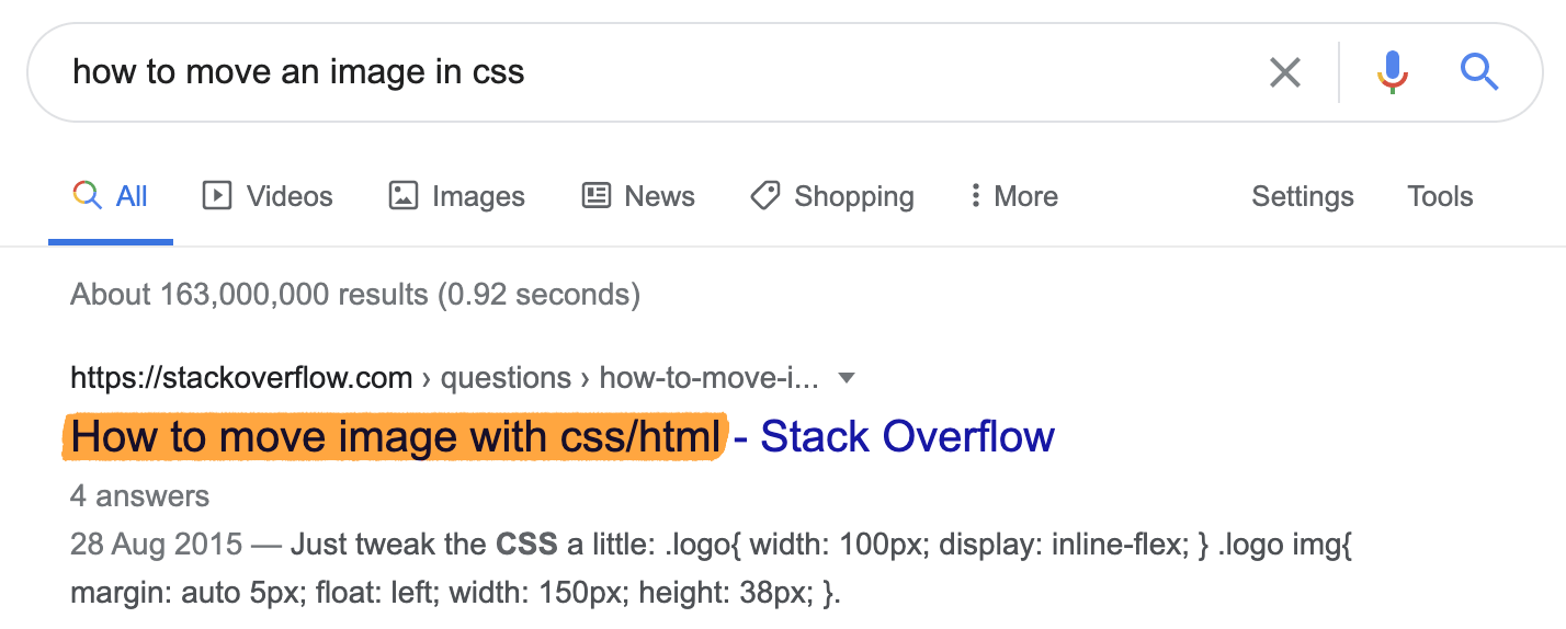 此页面上的 H1 是 80 个字符,在页面本身上看起来非常好。但是因为 WordPress 使用相同的文字作为标题标签,所以它会在搜索结果中被截断。