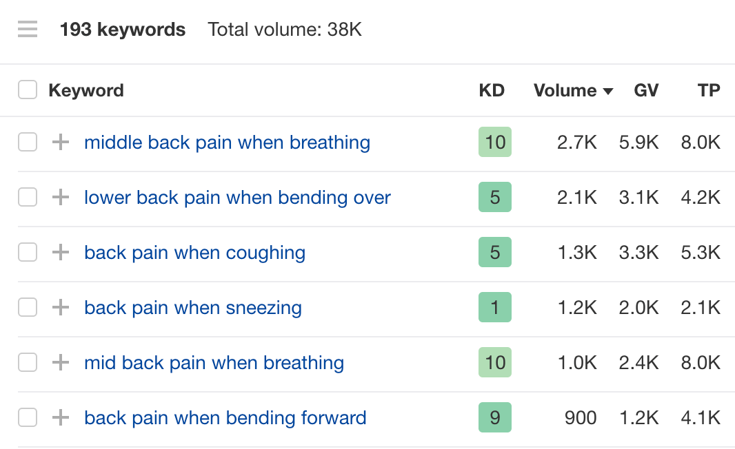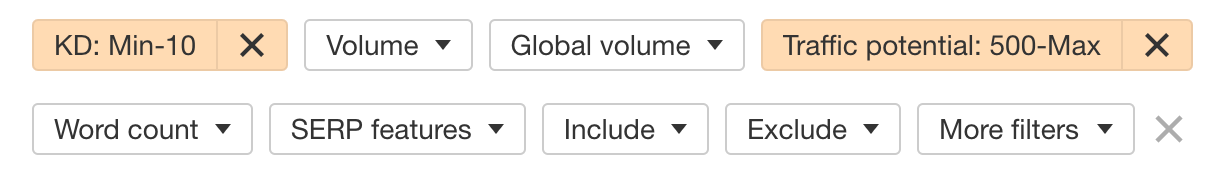- 关键词难度低(KD)–KD是在前10个有机搜索结果中排名关键词的难度