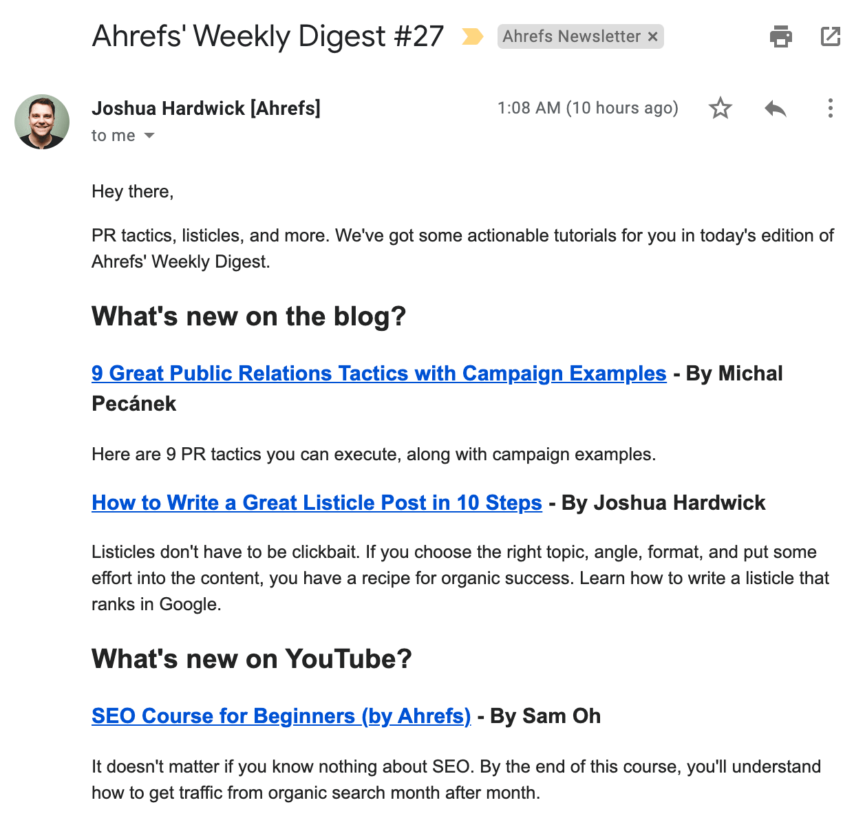 最简单的方法是提供一些东西作为订阅的回报。在 Ahrefs,我们的策略很简单。我们直接把他们喜欢的内容发到他们的邮箱。