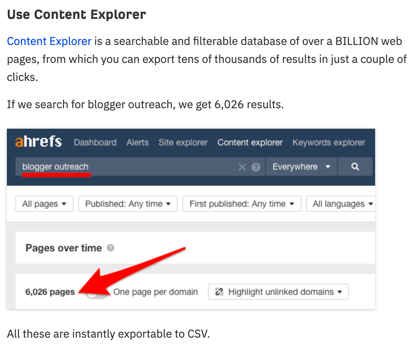 你可以使用内容分析查找这些站点。 内容分析是Ahrefs中的一个小型搜索引擎。 它由我们的50亿个页面数据库提供动力,你可以使用它来查找网络上任何内容的提及。