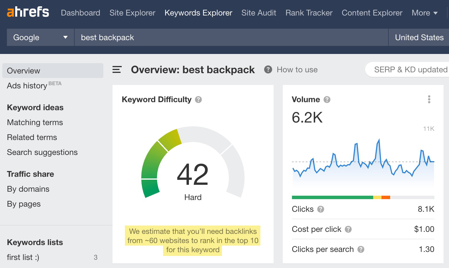 因此,在这篇文章中,我将概述关键词难度指标的优点和缺点,并告诉你,专业的 SEO 人员除了看这个指标之外还会关注哪些东西。