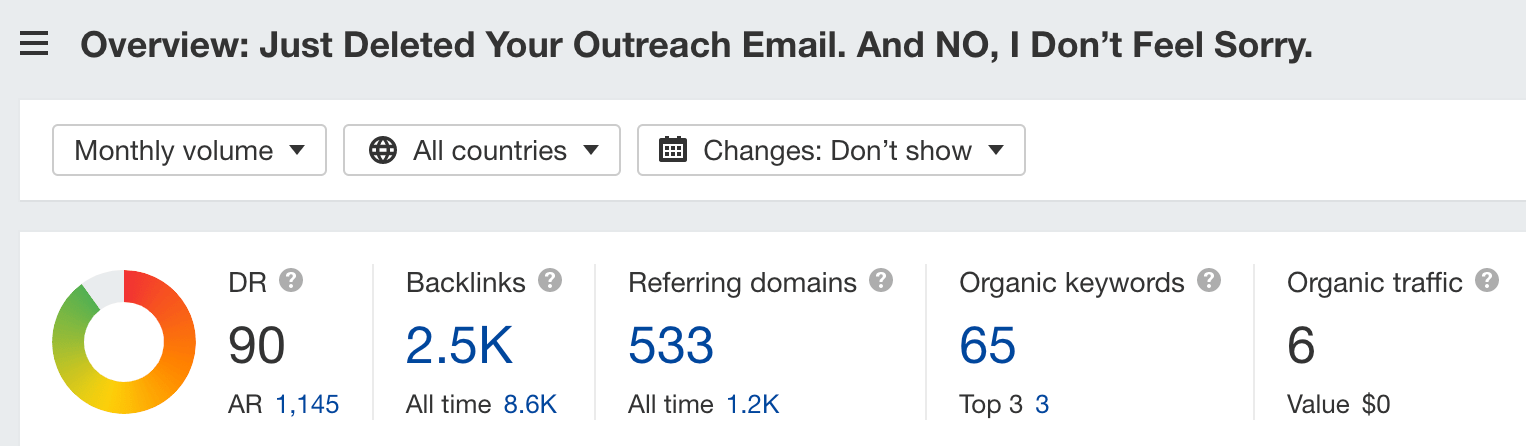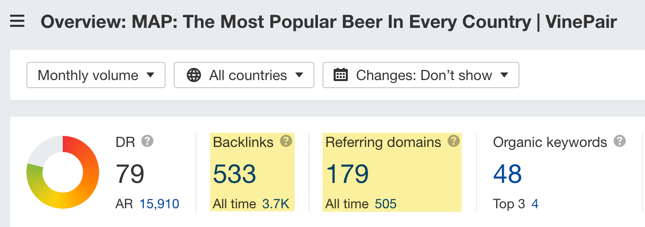获得了来自 179 个网站的超过 533 个反向链接,做得相当的好。