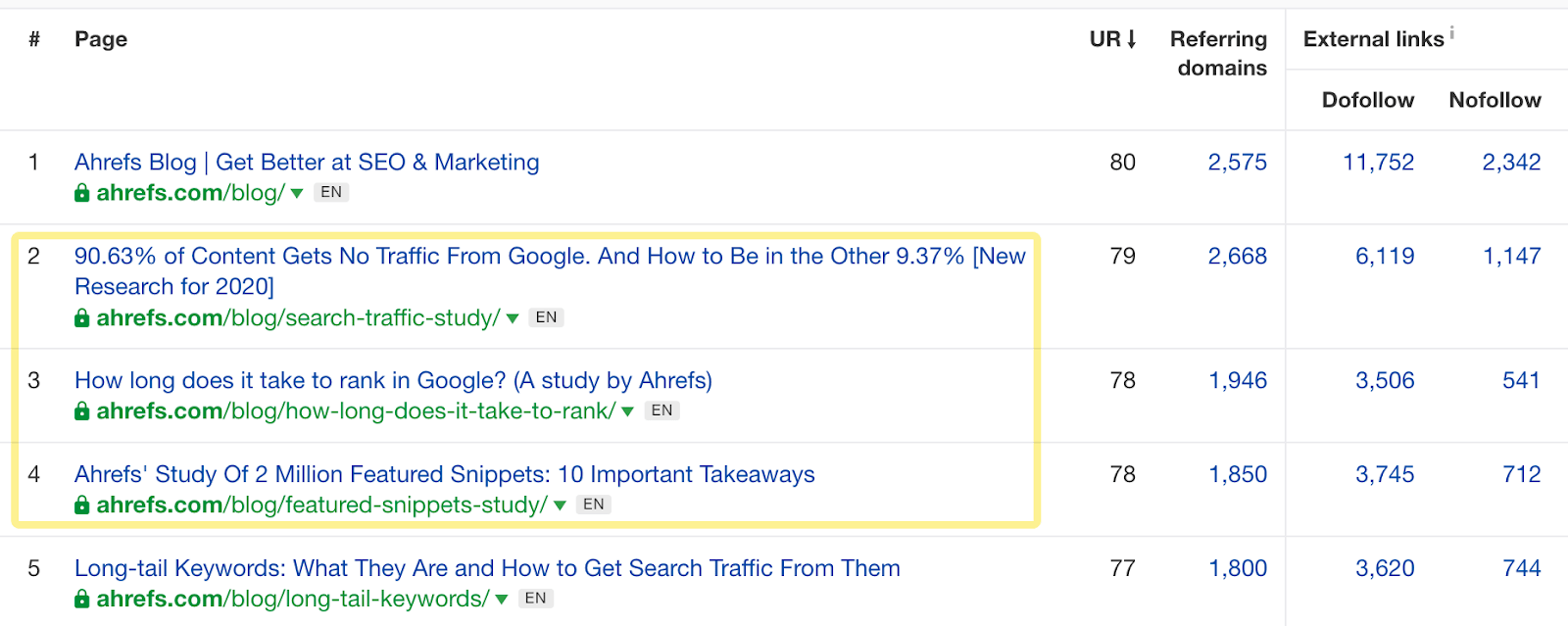 首先,因为链接是谷歌的三大排名因素之一,有更多链接的网页往往排名更高,获得更多流量。我们对超过10亿个网页的研究也证实了这一点。