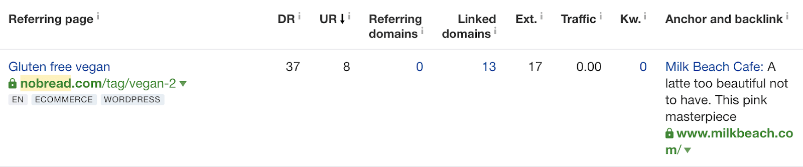 你会注意到还有一个指向咖啡店网站的反向链接,它也是一个属性为“follow”的链接。这在非结构化引用中很常见,这也是它们对 SEO 如此强大的原因之一。