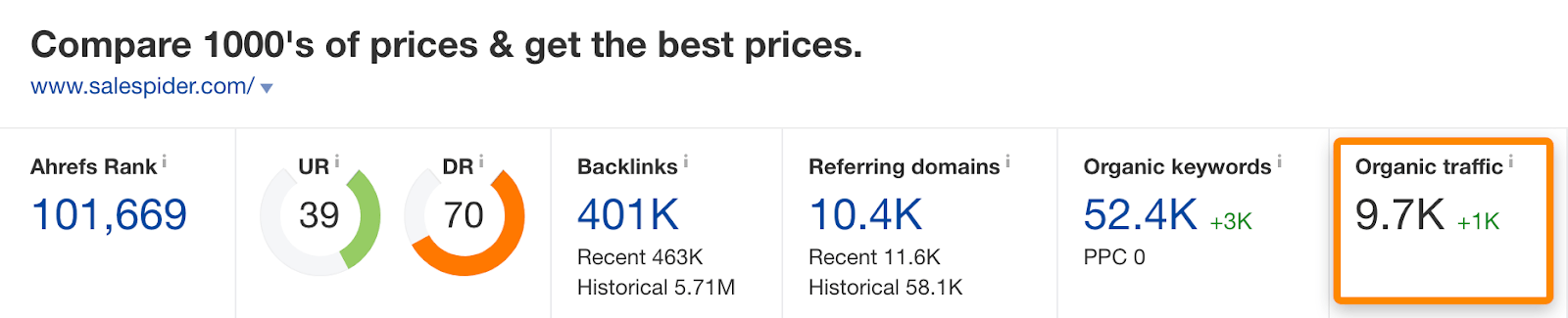 在列表中的任何站点上点击插入符号以查看其 SEO 指标,包括估计的自然流量。这可以帮助判断该网站的受欢迎程度,以及是否优先考虑上榜。