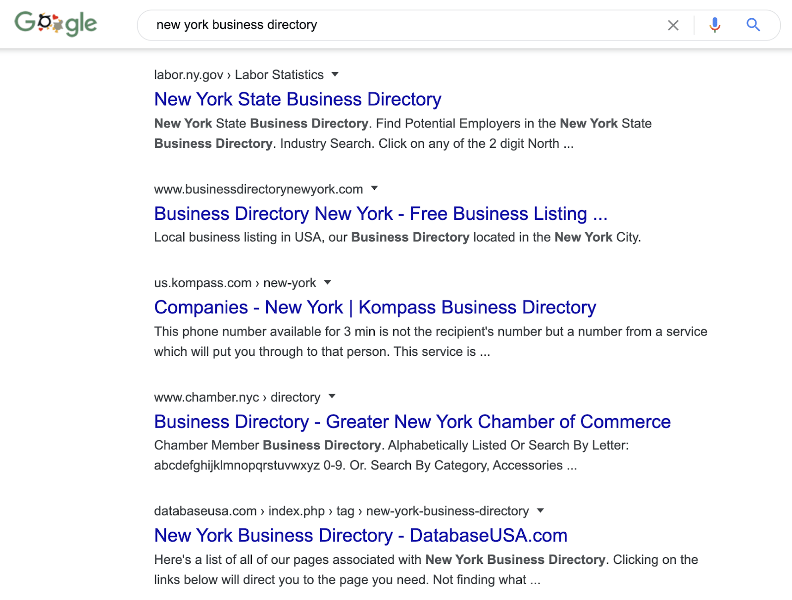 要怎么知道它们是哪些?如果你听说过它们,那么它们很可能值得提交(假设它是免费的)。否则,一个很好的判断质量的方式,是在Google 上搜索“[您的行业]” 及”[位置]”,看看它们是否在前 100 名搜索结果中可见。