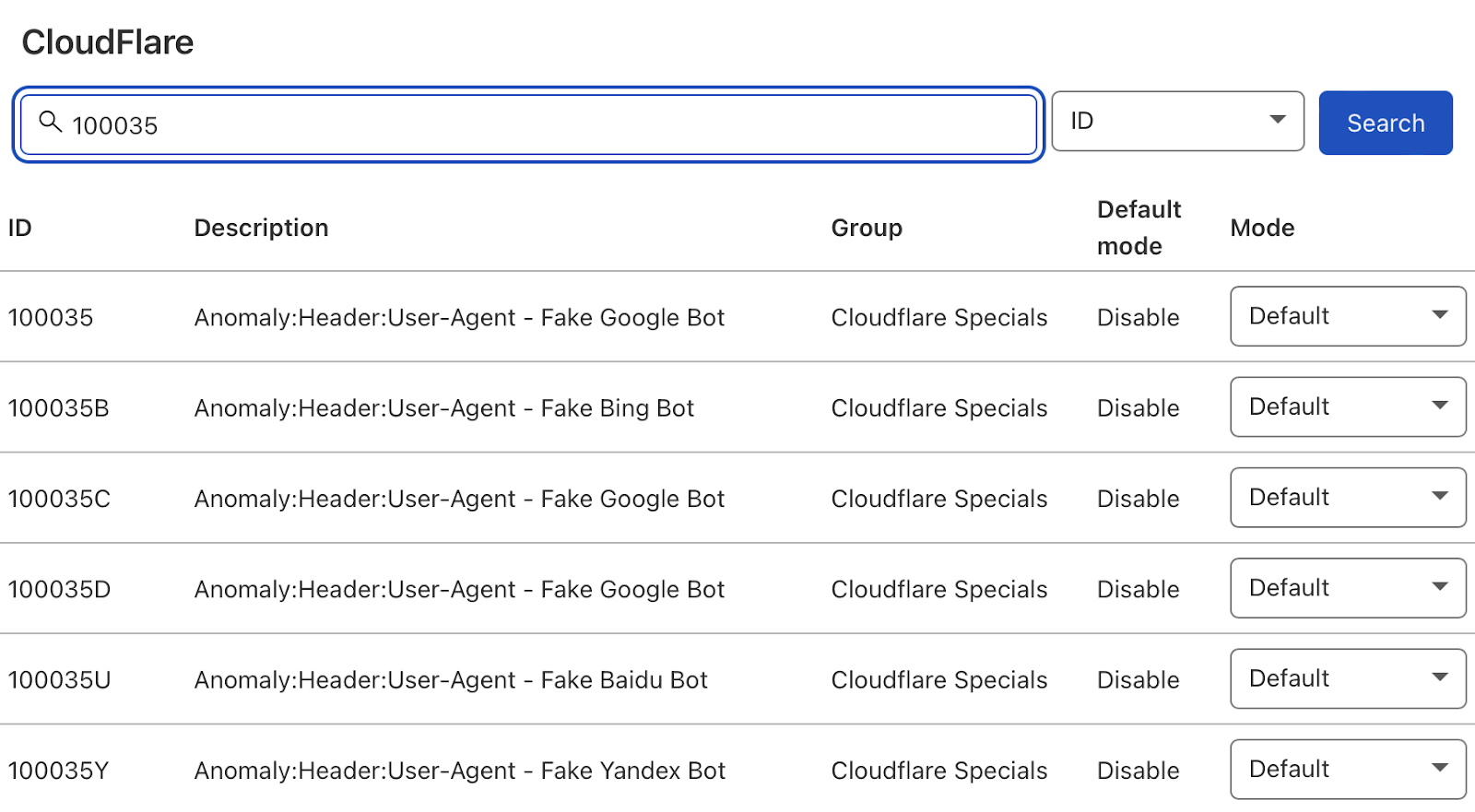 Cloudflare 现在将提供阻止伪造搜索机器人的选项列表,将相关请求设置为“Block”,Cloudflare 将检查来自搜索机器人用户代理的所有请求是否合法,以便保持你的日志文件干净。