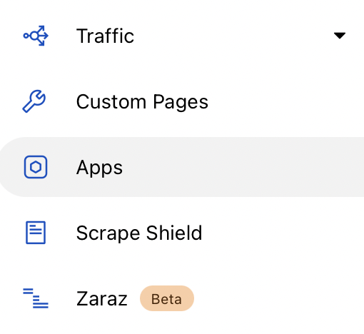 我不会详细介绍如何使用 Logflare 的每一步,但要开始使用,需要先前往 Cloudflare 仪表板的应用程序(Apps)。